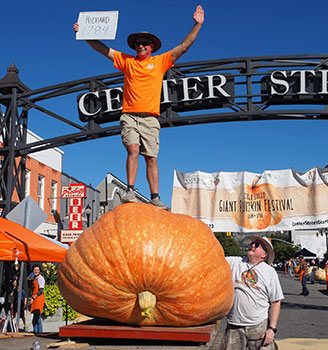 Ralph and Launa Laub broke the record set in 2022 by just two pounds with their giant gourd. Pictured is Jay Richard of Wyoming, who won last year’s contest and placed fourth this year.
