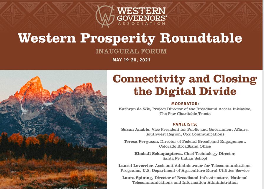 The Western Governors' Association launched the Western Prosperity Roundtable with speeches by Western Governors and two days of roundtable discussions on broadband connectivity, workforce training and more. The Roundtable is a new platform for WGA’s work on policies that advance Western Governors’ vision for expanded prosperity throughout the West.