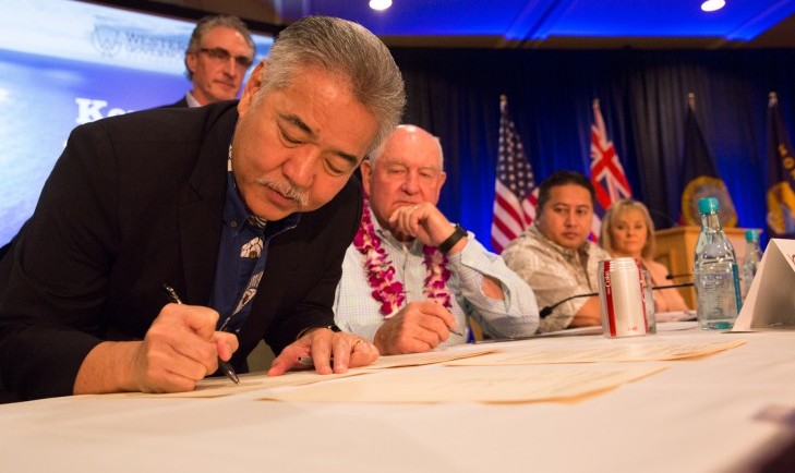 “This is an important step in cooperatively addressing land management challenges,” said Governor Ige. “We recognize that no one agency or level of government has the capacity to deal with all of these risks alone. This MOU puts us on a path to working closely on these serious matters.”