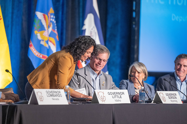 This theme of cooperation was echoed by Arizona Governor Katie Hobbs, who hosted the 2024 Western Prosperity Forum in April. Especially noteworthy were the fireside chats between Governor Hobbs, U.S. Deputy Secretary of Commerce Don Graves, and Dr. Homer Wilkes, the Under Secretary for Natural Resources and Environment at the U.S. Department of Agriculture (USDA). During the meeting in Phoenix, WGA covered a range of topics spanning digital equity and workforce development to extreme heat and wildfire mitigation.